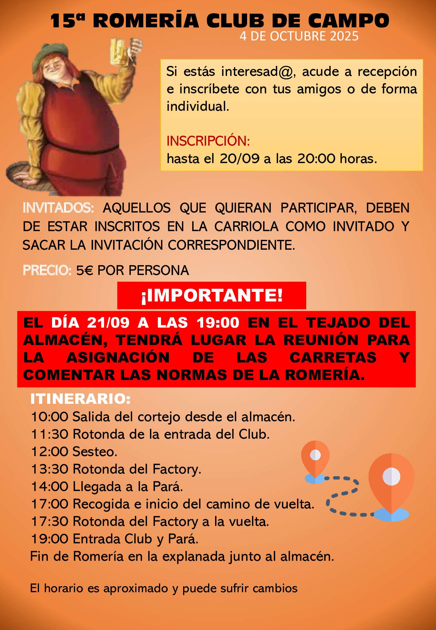 CLUB CAMPO SEVILLA - B 11/09/2025 - 12:42 PMCompartimos el cartel informativo de la celebración de la 15º Romería Club de Campo que tendrá lugar el próximo 4 de octubre.
