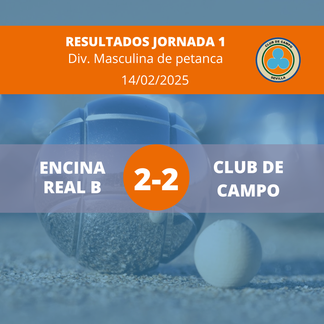CLUB CAMPO SEVILLA - B 17/02/2026 - 12:46 PMUna vez celebrada la Jornada 1 de petanca de la División Masculina, celebrada el 14 de febrero, los resultados son los siguientes: