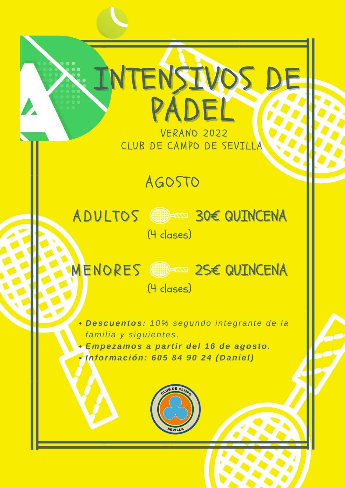 CLUB CAMPO SEVILLA - B 05/08/2022 - 08:28 AMA partir del próximo martes 16 de agosto comienza en nuestro Club de Campo los cursos intensivos de Pádel, organizados por la Escuela de Pádel.