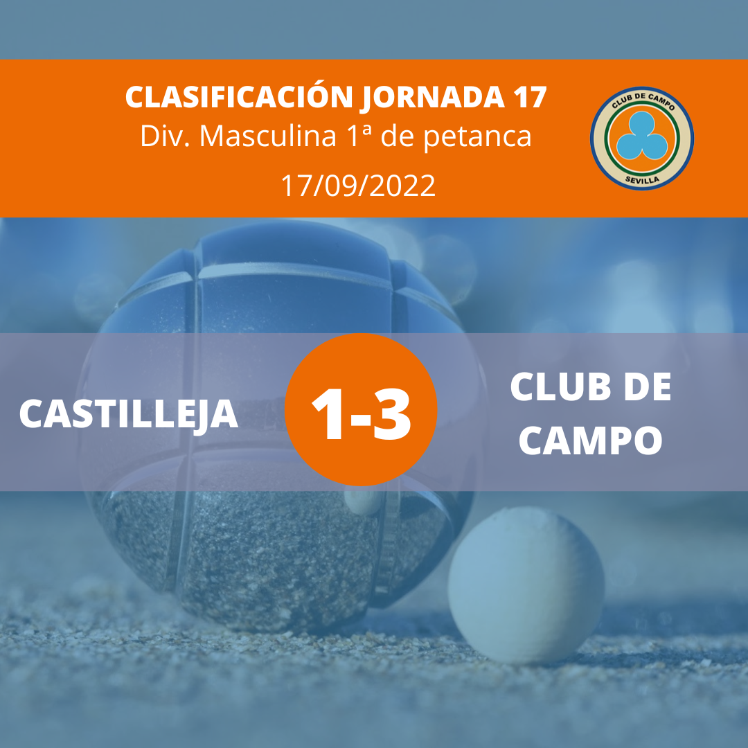 CLUB CAMPO SEVILLA - B 20/09/2022 - 08:50 AMUna vez celebrada la Jornada 17 de petanca de la División Masculina 1ª que se celebró el día 17 de septiembre, los resultados son los siguientes: